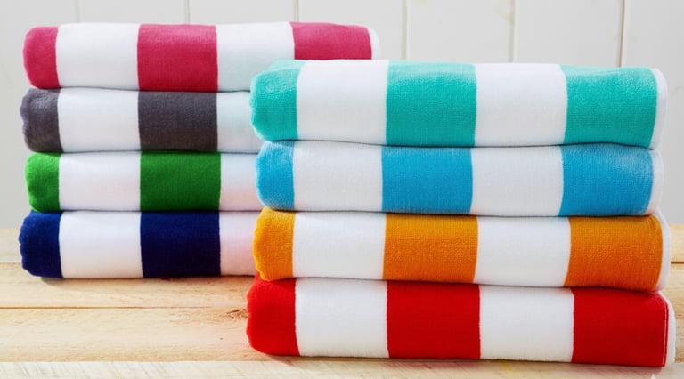 Designed to withstand rigorous commercial laundering, our towels feature vat-dyed yarns for maximum colorfastness against chlorine and UV exposure. The heavy-duty double-stitch hems prevent fraying, making them the ideal choice for luxury resorts, boutique hotels, and global distributors. These extra-large cabana stripes and solid-color beach towels offer a plush, lint-free experience that guarantees guest satisfaction.
